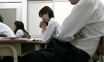 Schoolgirl Haruka Megumi gets her hairy pussy fucked by a bunch of educators