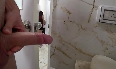 came to my stepmom bathroom, I flash my man rod near her and embark jerk off, and she pretends that nothing happened but she