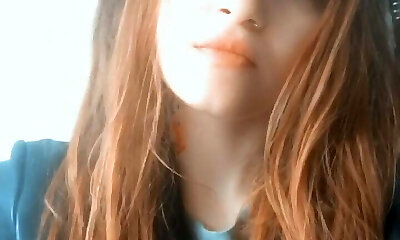 Redhead Asian woman with tattoos blows smoke