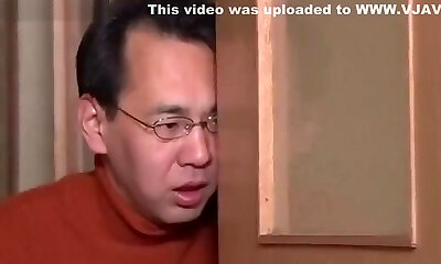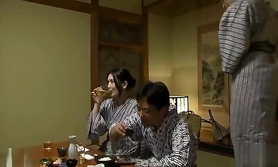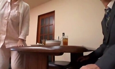 Japanese cougar slut gives her cunt to her husband's coworker at dinner time!